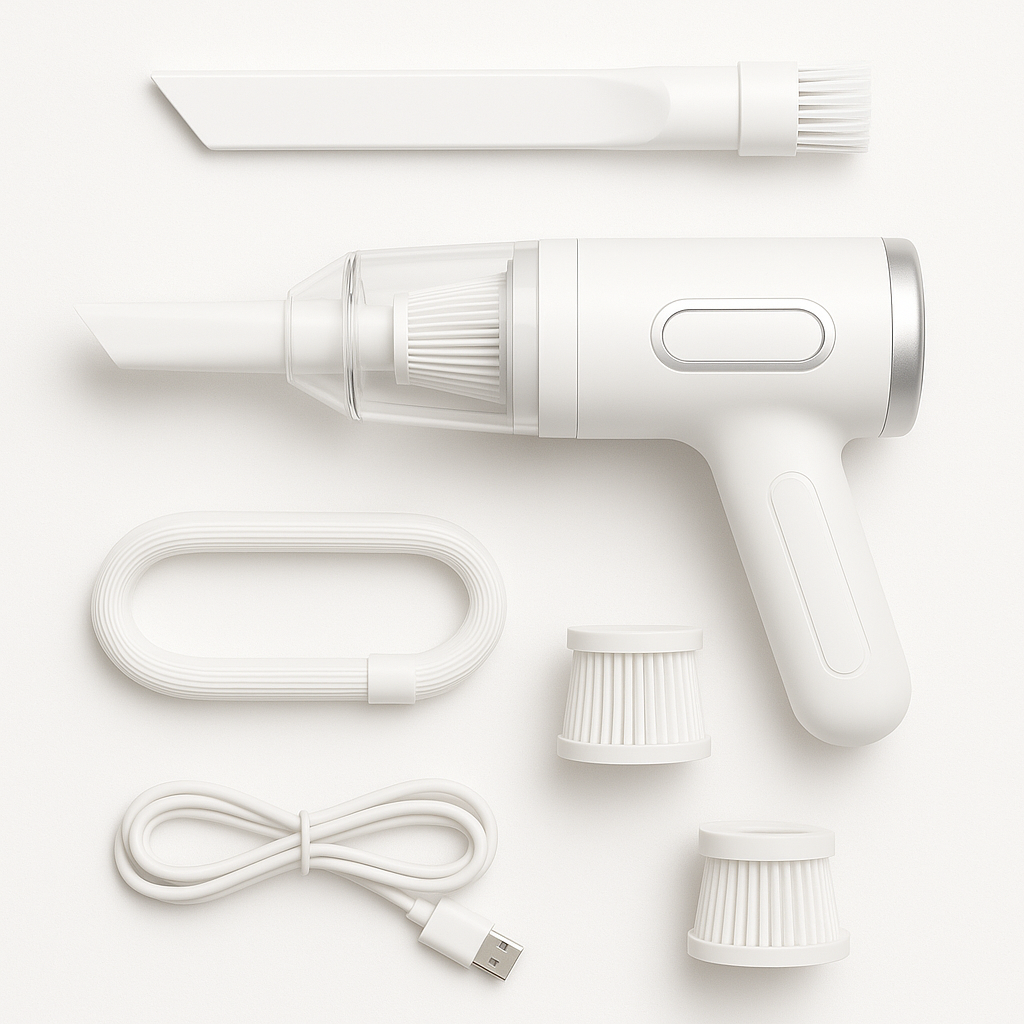 Includes attachments designed for seats, vents, cupholders, and hard-to-reach gaps.